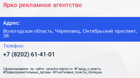 Ярко, рекламное агентство по адресу Вологодская область, Череповец, Октябрьский проспект, 38 в дальнейшем Организация, размещена в следующих категориях: