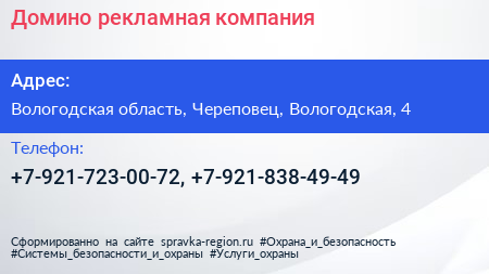 Домино, рекламная компания по адресу Вологодская область, Череповец, Вологодская, 4 в дальнейшем Организация, размещена в следующих категориях: