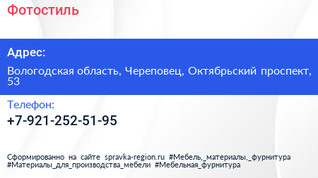 Фотостиль по адресу Вологодская область, Череповец, Октябрьский проспект, 53 в дальнейшем Организация, размещена в следующих категориях: