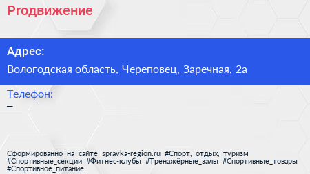 Proдвижение по адресу Вологодская область, Череповец, Заречная, 2а в дальнейшем Организация, размещена в следующих категориях:
