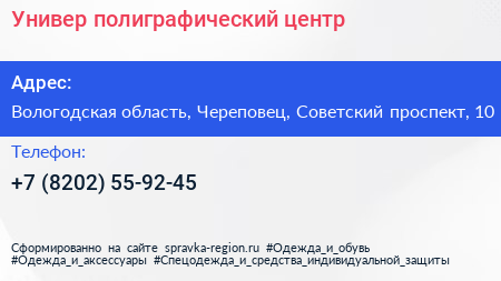 Универ, полиграфический центр по адресу Вологодская область, Череповец, Советский проспект, 10 в дальнейшем Организация, размещена в следующих категориях: