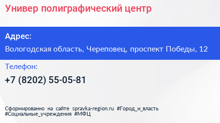 Универ, полиграфический центр по адресу Вологодская область, Череповец, проспект Победы, 12 в дальнейшем Организация, размещена в следующих категориях: