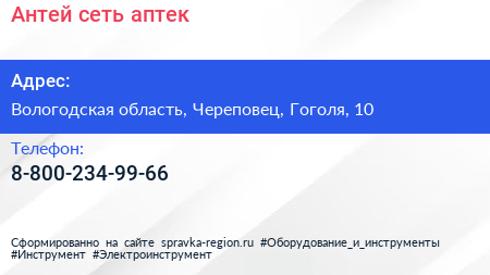 Антей, сеть аптек по адресу Вологодская область, Череповец, Гоголя, 10 в дальнейшем Организация, размещена в следующих категориях: