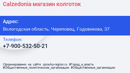 Calzedonia, магазин колготок по адресу Вологодская область, Череповец, Годовикова, 37 в дальнейшем Организация, размещена в следующих категориях: