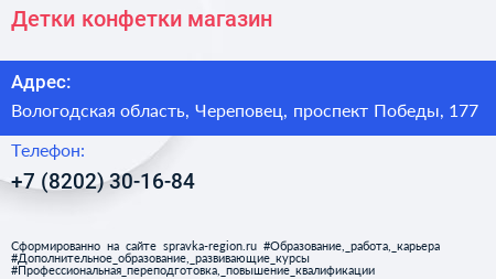 Детки-конфетки, магазин по адресу Вологодская область, Череповец, проспект Победы, 177 в дальнейшем Организация, размещена в следующих категориях: