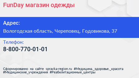 FunDay, магазин одежды по адресу Вологодская область, Череповец, Годовикова, 37 в дальнейшем Организация, размещена в следующих категориях: