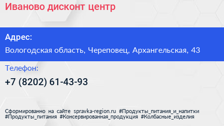 Иваново, дисконт-центр по адресу Вологодская область, Череповец, Архангельская, 43 в дальнейшем Организация, размещена в следующих категориях: