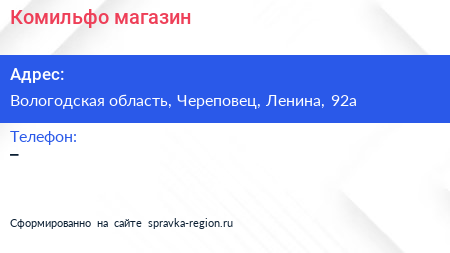 Комильфо, магазин по адресу Вологодская область, Череповец, Ленина, 92а в дальнейшем Организация, размещена в следующих категориях: