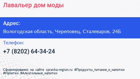 Лавальер, дом моды по адресу Вологодская область, Череповец, Сталеваров, 24Б в дальнейшем Организация, размещена в следующих категориях: