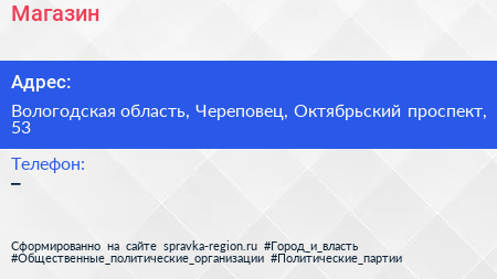 Магазин по адресу Вологодская область, Череповец, Октябрьский проспект, 53 в дальнейшем Организация, размещена в следующих категориях: