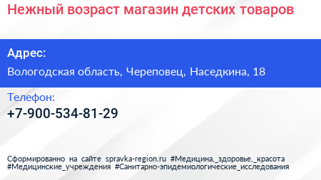 Нежный возраст, магазин детских товаров по адресу Вологодская область, Череповец, Наседкина, 18 в дальнейшем Организация, размещена в следующих категориях: