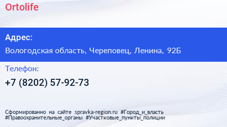 Ortolife по адресу Вологодская область, Череповец, Ленина, 92Б в дальнейшем Организация, размещена в следующих категориях: