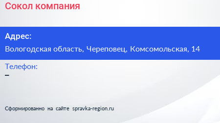 Сокол, компания по адресу Вологодская область, Череповец, Комсомольская, 14 в дальнейшем Организация, размещена в следующих категориях: