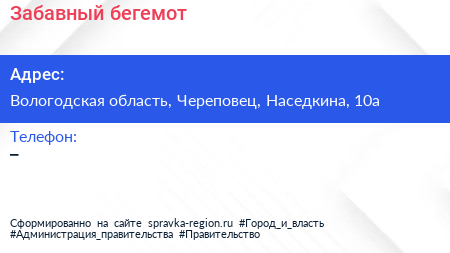 Забавный бегемот по адресу Вологодская область, Череповец, Наседкина, 10а в дальнейшем Организация, размещена в следующих категориях: