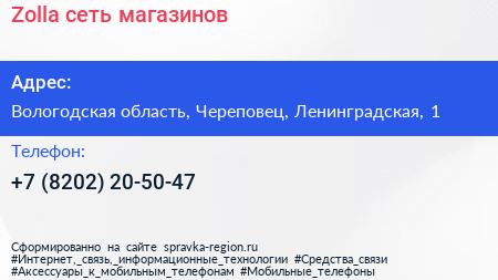 Zolla, сеть магазинов по адресу Вологодская область, Череповец, Ленинградская, 1 в дальнейшем Организация, размещена в следующих категориях: