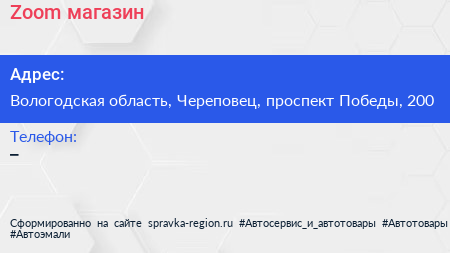Zoom, магазин по адресу Вологодская область, Череповец, проспект Победы, 200 в дальнейшем Организация, размещена в следующих категориях: