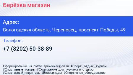 Берёзка, магазин по адресу Вологодская область, Череповец, проспект Победы, 49 в дальнейшем Организация, размещена в следующих категориях:
