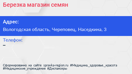 Березка, магазин семян по адресу Вологодская область, Череповец, Наседкина, 3 в дальнейшем Организация, размещена в следующих категориях: