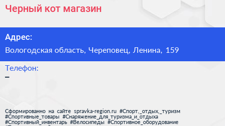 Черный кот, магазин по адресу Вологодская область, Череповец, Ленина, 159 в дальнейшем Организация, размещена в следующих категориях: