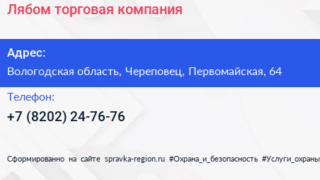 Лябом, торговая компания по адресу Вологодская область, Череповец, Первомайская, 64 в дальнейшем Организация, размещена в следующих категориях: