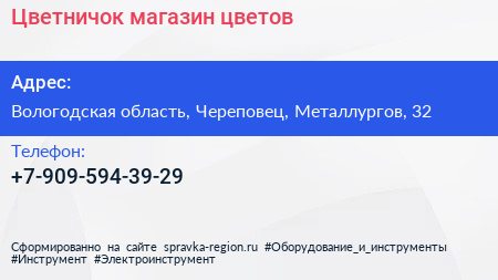 Цветничок, магазин цветов по адресу Вологодская область, Череповец, Металлургов, 32 в дальнейшем Организация, размещена в следующих категориях: