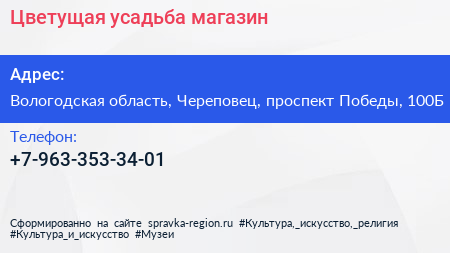 Цветущая усадьба, магазин по адресу Вологодская область, Череповец, проспект Победы, 100Б в дальнейшем Организация, размещена в следующих категориях: