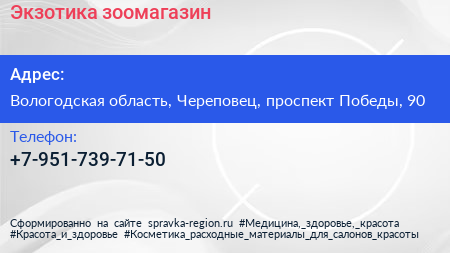 Экзотика, зоомагазин по адресу Вологодская область, Череповец, проспект Победы, 90 в дальнейшем Организация, размещена в следующих категориях: