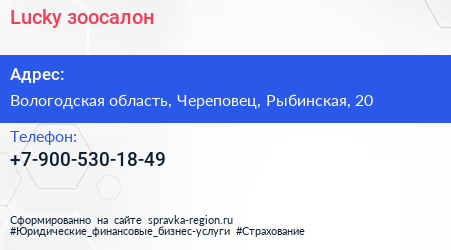 Lucky, зоосалон по адресу Вологодская область, Череповец, Рыбинская, 20 в дальнейшем Организация, размещена в следующих категориях: