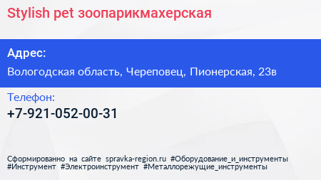 Stylish pet, зоопарикмахерская по адресу Вологодская область, Череповец, Пионерская, 23в в дальнейшем Организация, размещена в следующих категориях: