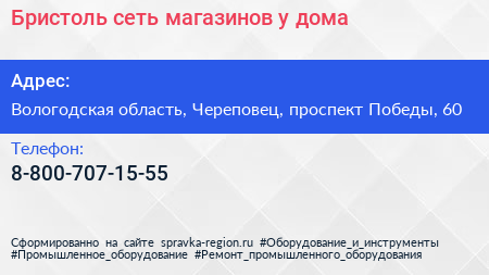 Бристоль, сеть магазинов у дома по адресу Вологодская область, Череповец, проспект Победы, 60 в дальнейшем Организация, размещена в следующих категориях: