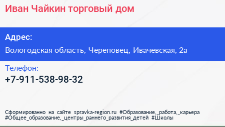 Иван Чайкин, торговый дом по адресу Вологодская область, Череповец, Ивачевская, 2а в дальнейшем Организация, размещена в следующих категориях: