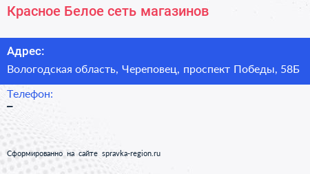 Красное & Белое, сеть магазинов по адресу Вологодская область, Череповец, проспект Победы, 58Б в дальнейшем Организация, размещена в следующих категориях: