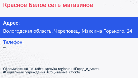 Красное & Белое, сеть магазинов по адресу Вологодская область, Череповец, Максима Горького, 24 в дальнейшем Организация, размещена в следующих категориях: