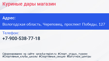 Куриные дары, магазин по адресу Вологодская область, Череповец, проспект Победы, 127 в дальнейшем Организация, размещена в следующих категориях: