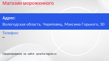 Магазин мороженного по адресу Вологодская область, Череповец, Максима Горького, 30 в дальнейшем Организация, размещена в следующих категориях: