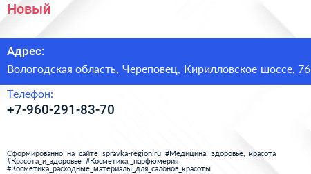 Новый по адресу Вологодская область, Череповец, Кирилловское шоссе, 76 в дальнейшем Организация, размещена в следующих категориях: