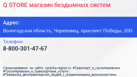 Q STORE, магазин бездымных систем по адресу Вологодская область, Череповец, проспект Победы, 200 в дальнейшем Организация, размещена в следующих категориях: