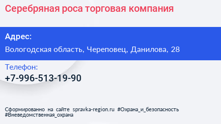 Серебряная роса, торговая компания по адресу Вологодская область, Череповец, Данилова, 28 в дальнейшем Организация, размещена в следующих категориях: