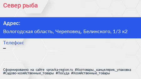 Север рыба по адресу Вологодская область, Череповец, Белинского, 1/3 к2 в дальнейшем Организация, размещена в следующих категориях: