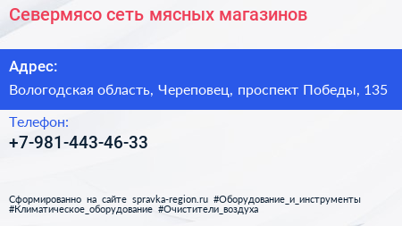 Севермясо, сеть мясных магазинов по адресу Вологодская область, Череповец, проспект Победы, 135 в дальнейшем Организация, размещена в следующих категориях: