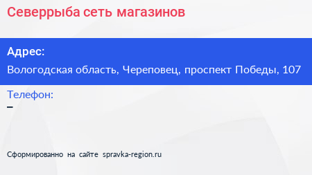 Северрыба, сеть магазинов по адресу Вологодская область, Череповец, проспект Победы, 107 в дальнейшем Организация, размещена в следующих категориях: