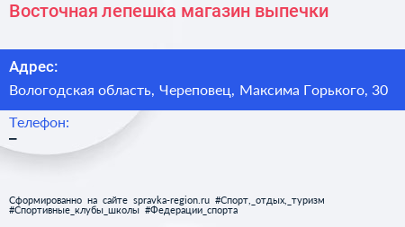 Восточная лепешка, магазин выпечки по адресу Вологодская область, Череповец, Максима Горького, 30 в дальнейшем Организация, размещена в следующих категориях: