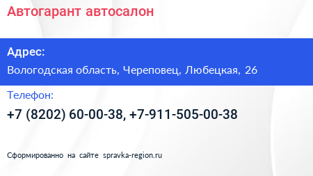 Автогарант, автосалон по адресу Вологодская область, Череповец, Любецкая, 26 в дальнейшем Организация, размещена в следующих категориях: