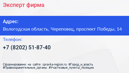 Эксперт, фирма по адресу Вологодская область, Череповец, проспект Победы, 14 в дальнейшем Организация, размещена в следующих категориях: