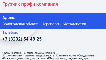 Грузчик-профи, компания по адресу Вологодская область, Череповец, Металлистов, 1 в дальнейшем Организация, размещена в следующих категориях: