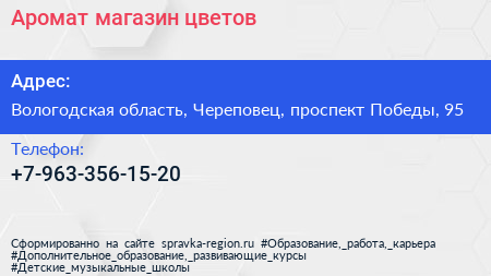 Аромат, магазин цветов по адресу Вологодская область, Череповец, проспект Победы, 95 в дальнейшем Организация, размещена в следующих категориях: