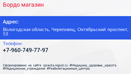 Бордо, магазин по адресу Вологодская область, Череповец, Октябрьский проспект, 53 в дальнейшем Организация, размещена в следующих категориях: