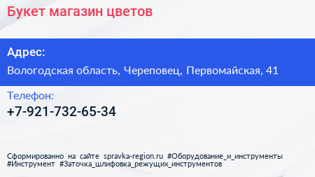 Букет, магазин цветов по адресу Вологодская область, Череповец, Первомайская, 41 в дальнейшем Организация, размещена в следующих категориях: