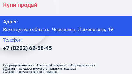 Купи-продай по адресу Вологодская область, Череповец, Ломоносова, 19 в дальнейшем Организация, размещена в следующих категориях: