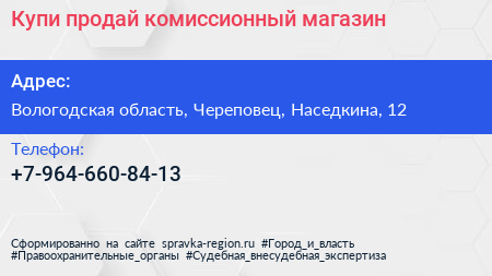 Купи-продай, комиссионный магазин по адресу Вологодская область, Череповец, Наседкина, 12 в дальнейшем Организация, размещена в следующих категориях: